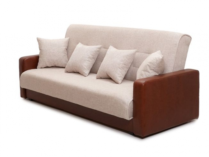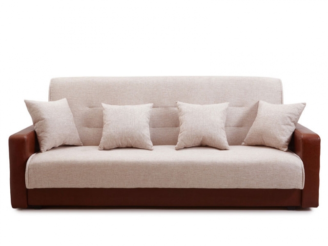 Кож.зам. Немо коричневыйДиван книжка Лондон бежевый с прямыми, невысокими подлокотниками является отличным решением для интерьера в стиле городская классика. Очень удобный диван с наполнителем из ППУ предлагает расслабляющий отдых днем, на ночь, при необходимости, модель быстро раскладывается в просторную кровать, для чего используется система «книжка». Одежду, белье, постельные принадлежности можно хранить в специальном отсеке. Декоративные подушки в комплект не входят, они приобретаются отдельно.