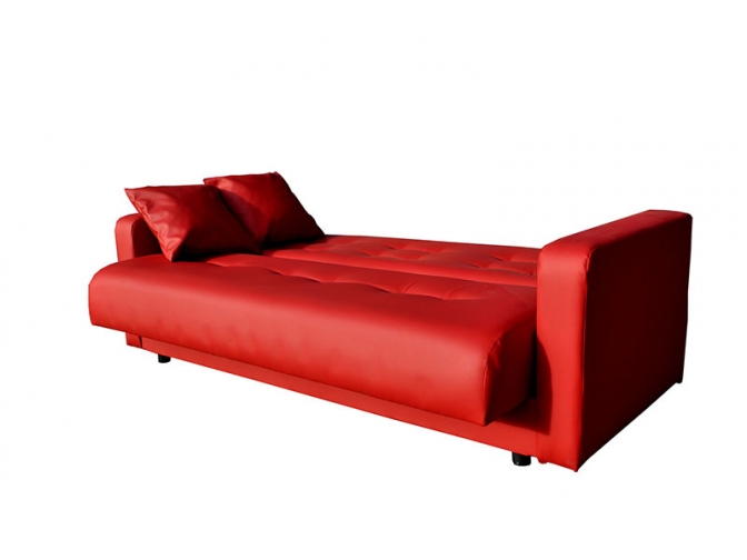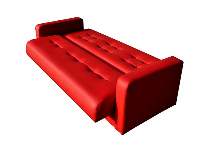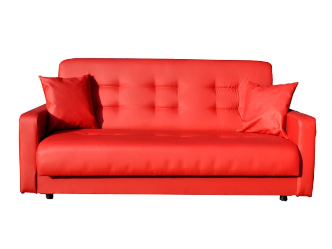 Диван книжка Аккорд Экокожа красный – яркое, стильное решение для современной обстановки спальни или гостиной. Удобный диван с прямыми подлокотниками оснащен механизмом «книжка», что позволяет быстро организовать двуспальную кровать. В качестве наполнителя для мягких элементов использован упругий, беспружинный блок из ППУ.