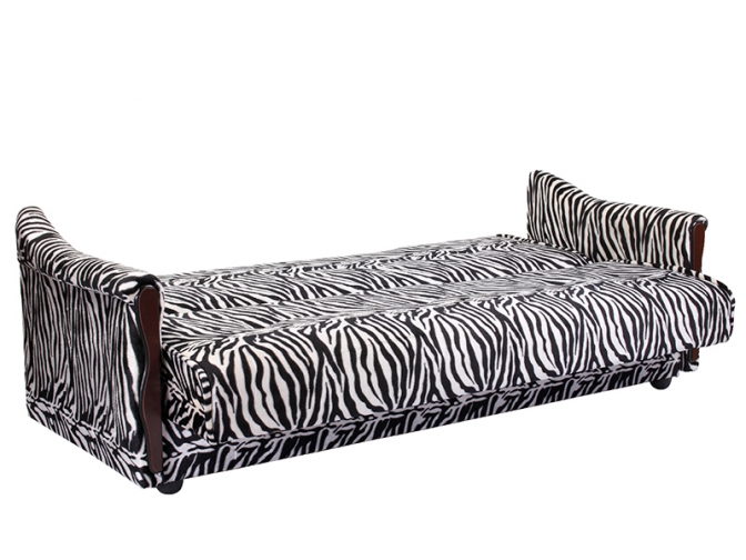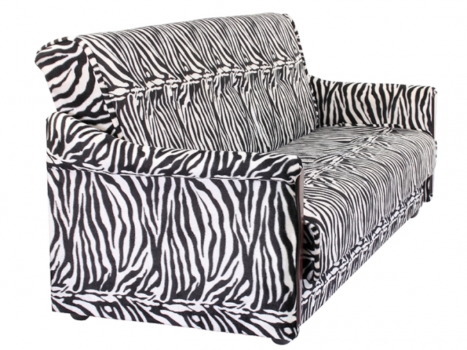 Диван Уют велюр зебра – интересная, очень привлекательная модель с оригинальной расцветкой, имитирующей шкуру зебры. Прямой диван с невысокими, скругленными подлокотниками можно за пару движений разобрать в просторную кровать с ровным спальным местом, благодаря механизму «книжка». В качестве наполнителя установлен беспружинный блок из ППУ.