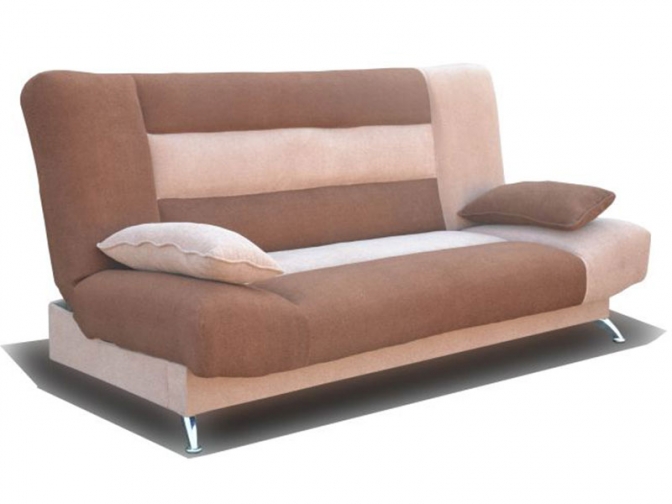 Диван книжка Лодочка велюр бежево-коричневая с декоративными подушками прекрасно подходит для небольшой спальни или гостиной. Благодаря механизму «книжка», диван легко раскладывается в комфортабельную кровать с матрасом из беспружинного блока ППУ. Традиционных подлокотников нет, сиденье модели слегка приподнимается по краям, обеспечивая удобный отдых.
