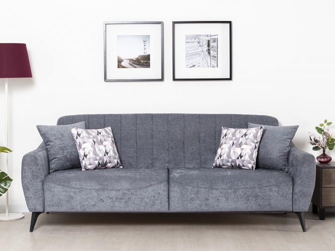 В комплекте идут 2 декоративные подушки с наполнителем из полиэфирного волокна «шарики», которые подчеркивают стиль дивана и добавляют комфорта. Металлические опоры в черном цвете придают модели изысканный вид, а их высота 165 мм обеспечивает устойчивость и лёгкость в уходе.