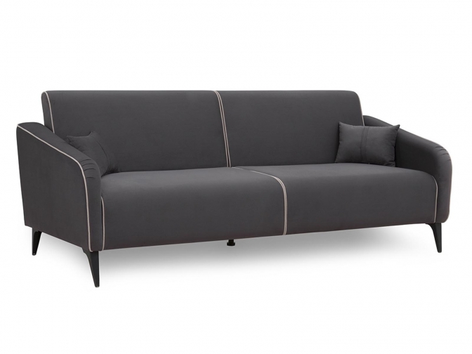 В комплекте идут 2 декоративные подушки с наполнителем из полиэфирного волокна «шарики», которые подчеркивают стиль дивана и добавляют комфорта. Металлические опоры в черном цвете придают модели изысканный вид, а их высота 165 мм обеспечивает устойчивость и лёгкость в уходе.
