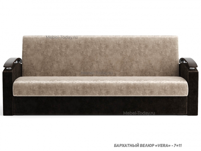 Возможные размеры по ширине: 116, 124 или 132 см. Длина спального места может быть увеличена на заказ. Также возможно изготовление подлокотников без стаканов.