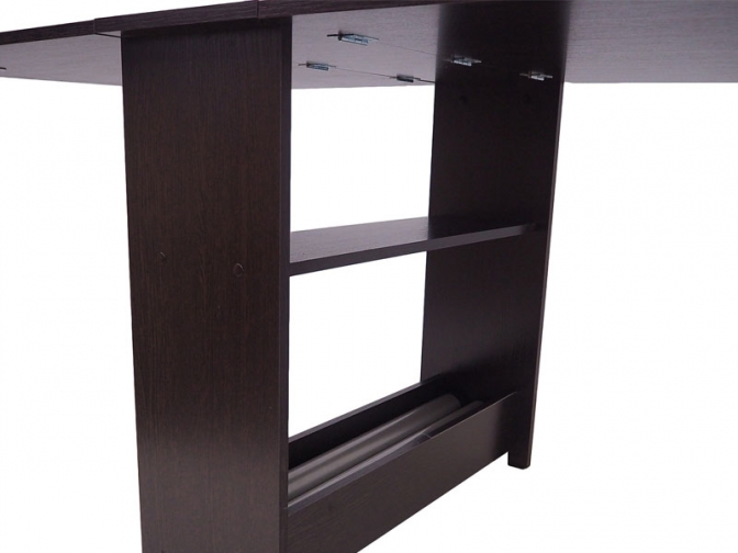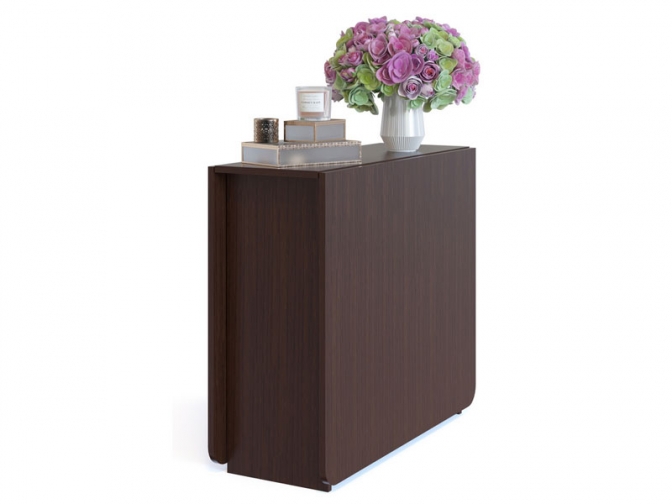 Венге (1)Стол-книжка СП-04М.1 прекрасная модель стола-трансформера, который в сложенном виде используется в качестве стильной аккуратной тумбочки, занимая минимум полезной площади в помещении. Разложить стол можно в двух вариантах: откинув одну столешницу либо обе, при этом стол-книжка превращается в просторный, красивый обеденный стол, где могут поместиться несколько человек.
