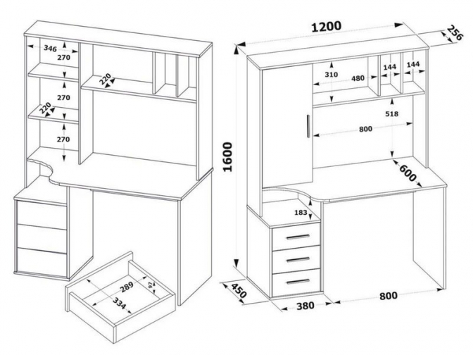 Стол компьютерный КСТ-16 с надстройкой станет отличным решением для комфортабельного рабочего места. Под столешницей находится вместительная боковая тумба с тремя выдвижными ящиками и полкой. Надстройка оборудована большим распашным шкафчиком и полкой с несколькими перегородками.