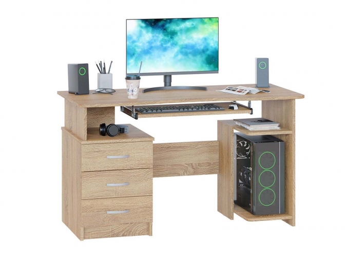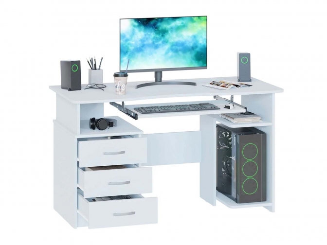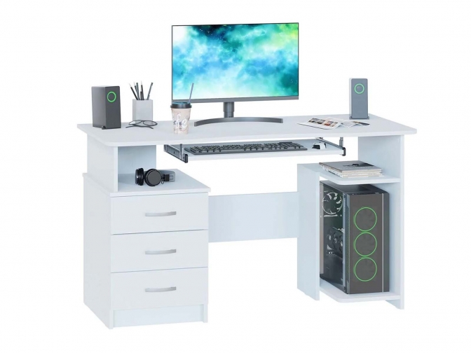 Компьютерный стол КСТ-08.1 - функциональная модель с эргономичной столешницей из прочного 16-мм ДСП, обработанной износостойкой кромкой ПВХ. Комплектуется удобной тумбой с тремя ящиками и полкой для системного блока, а также возможностью сборки с левой или правой ориентацией.