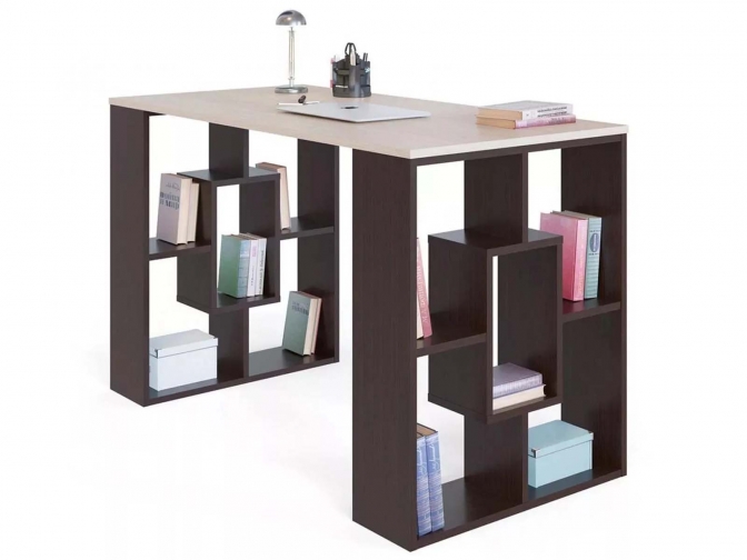 Письменный стол СПМ-15 - нестандартное решение с функциональными ножками-стеллажами, сочетающее просторную столешницу и удобные полки для хранения мелочей.