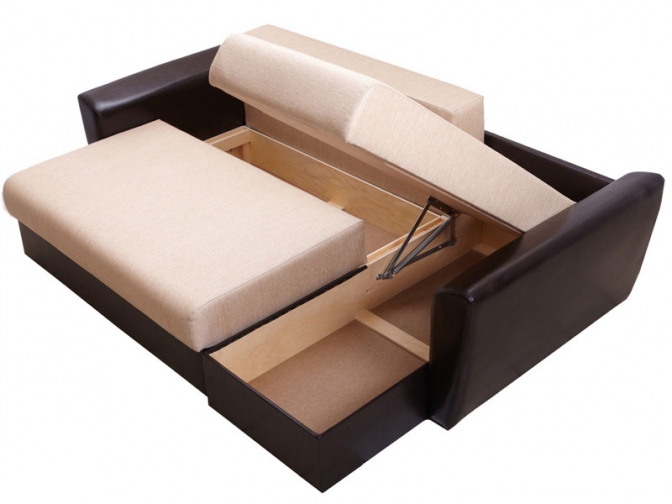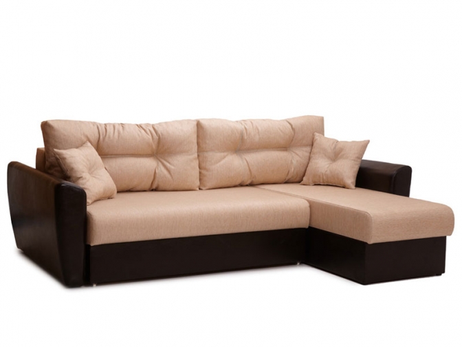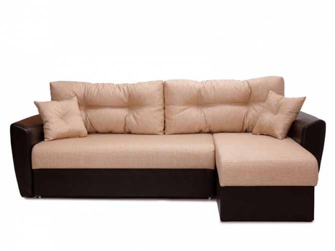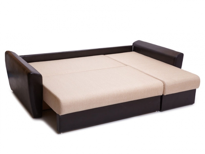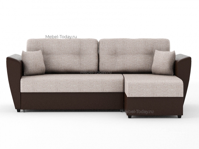 Угловой диван Амстердам еврокнижка рогожка бежевая + экокожа коричневая