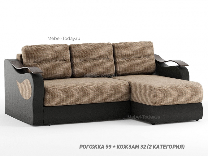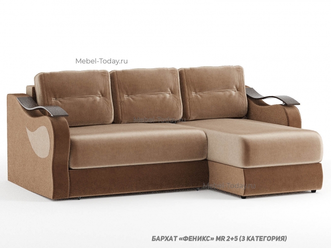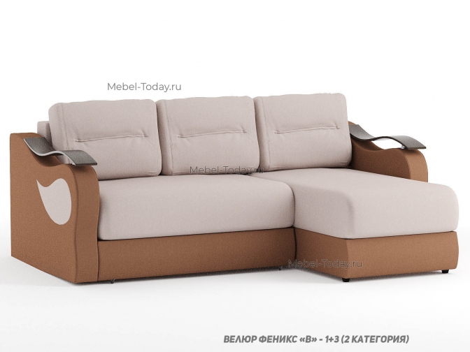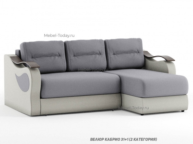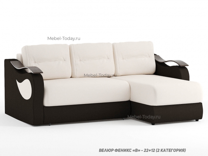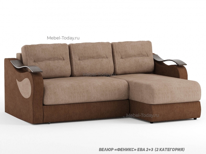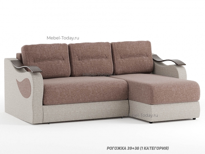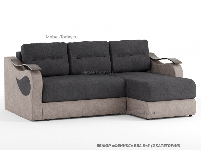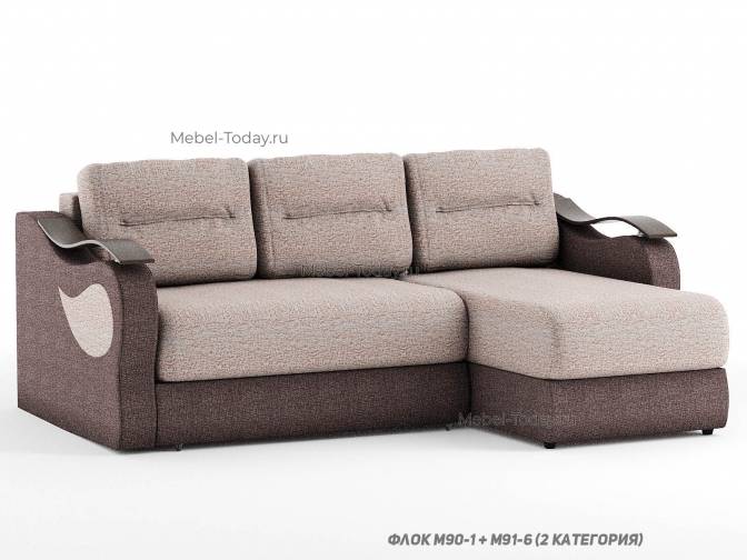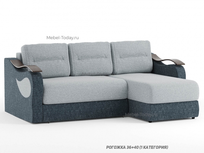 Угловой диван Капля, еврокнижка, пружинный, МДФ подлокотинки, обивка рогожка, флок, велюр, бархат, дизайн 1