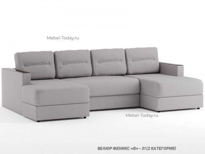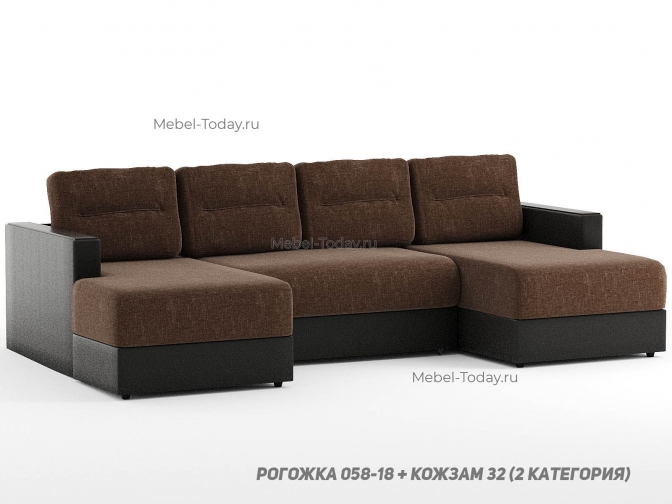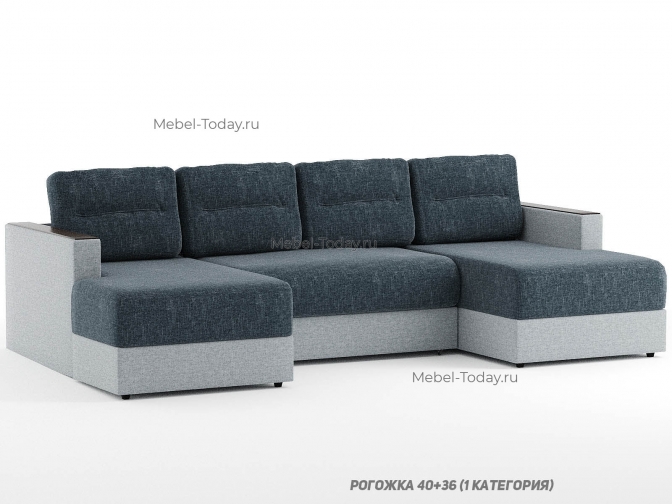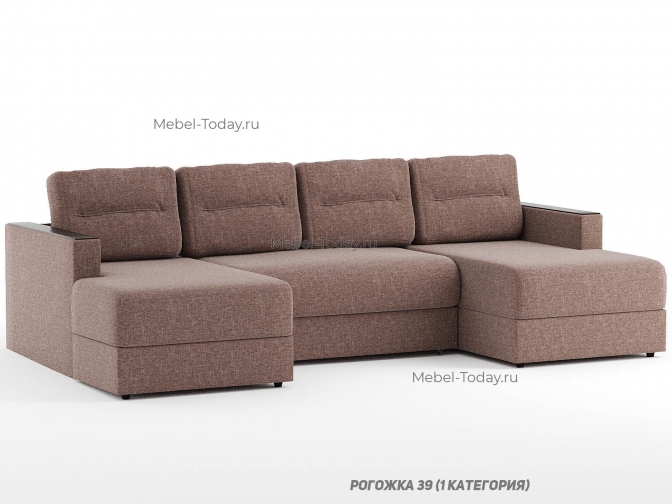 Большой П-образный диван еврокнижка Шерлок, ортопедический или пружинный наполнитель, дизайн 1