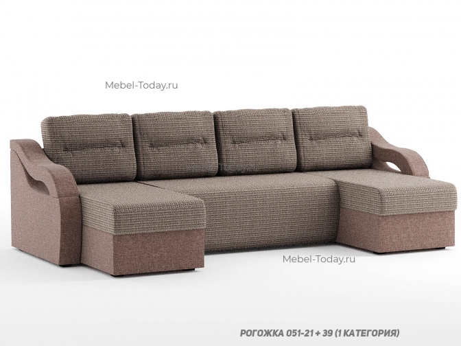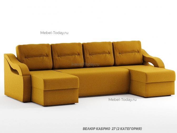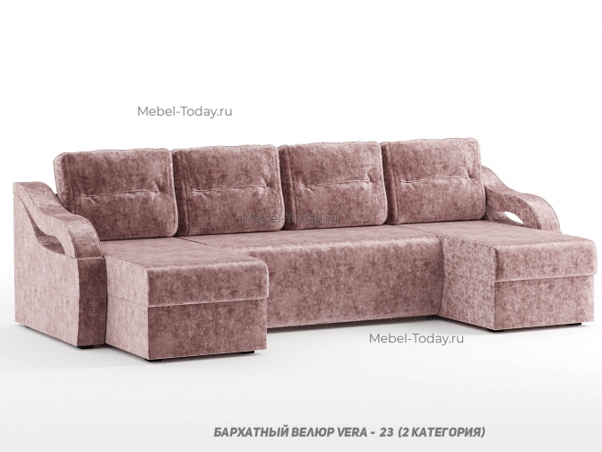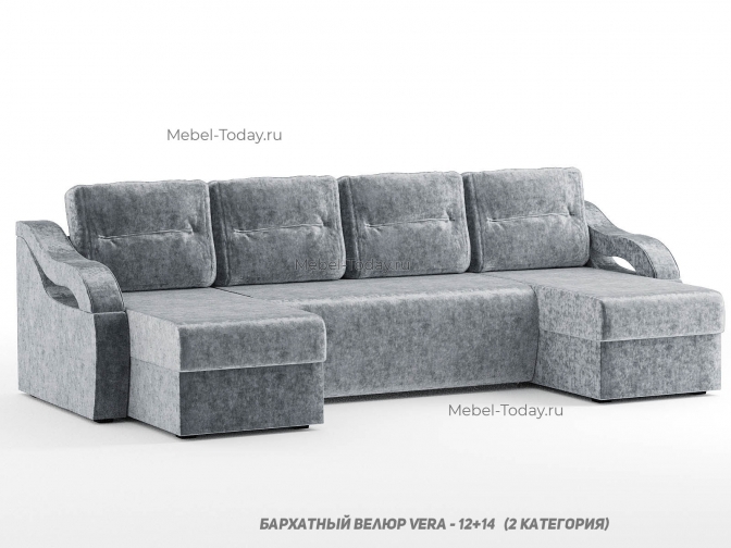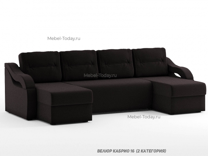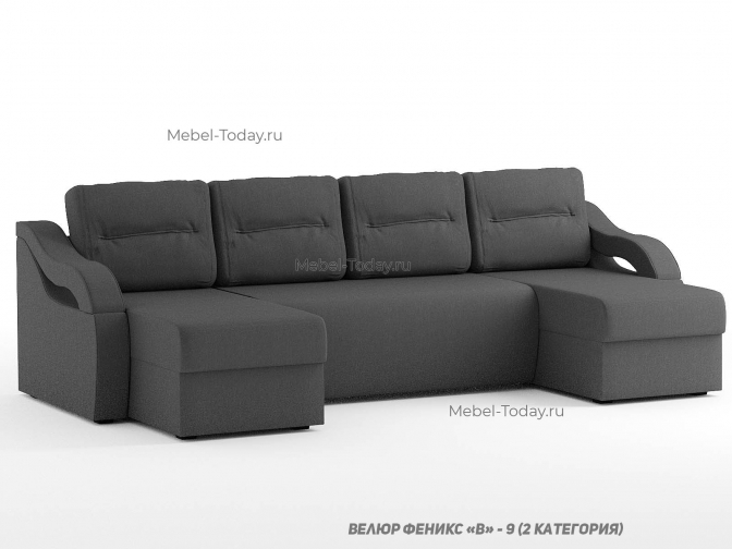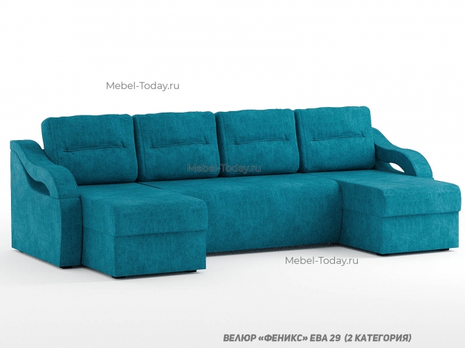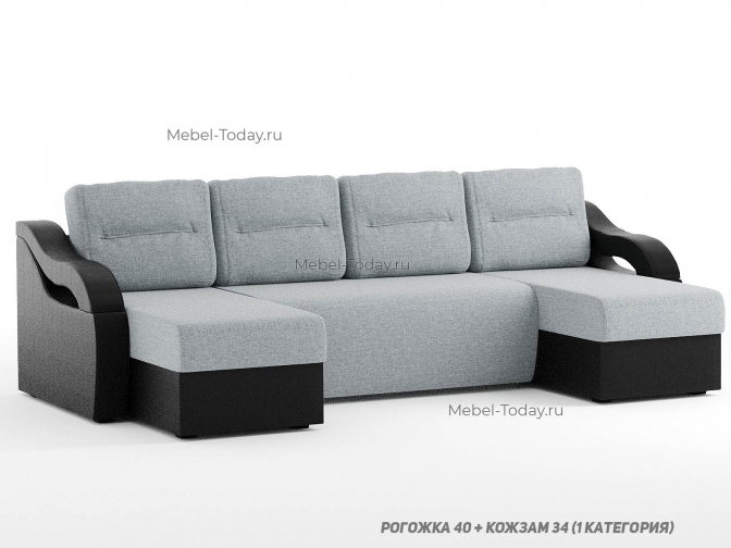 Большой П-образный диван еврокнижка Сильва, ортопедический или пружинный наполнитель, дизайн 2