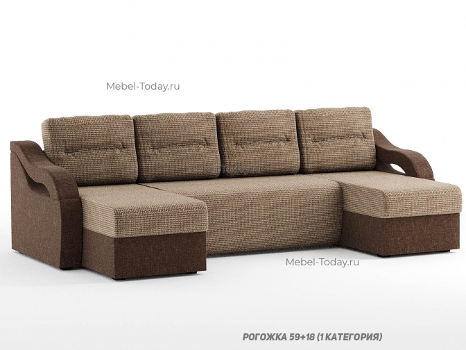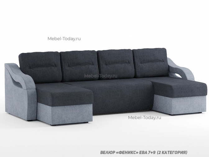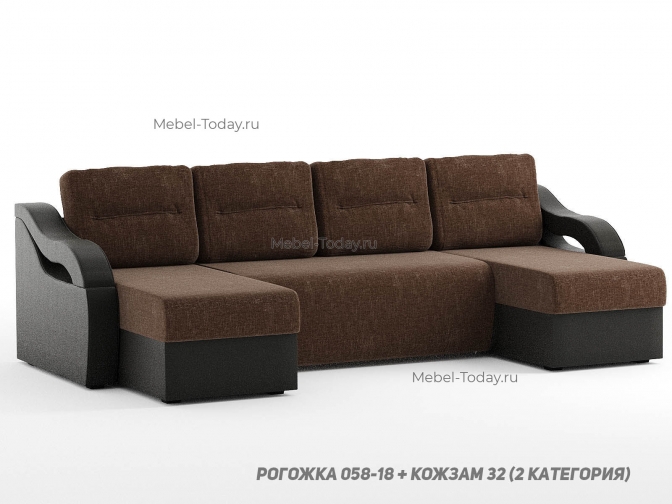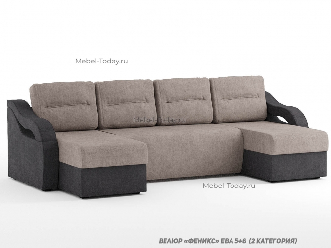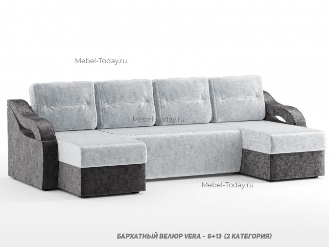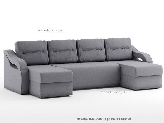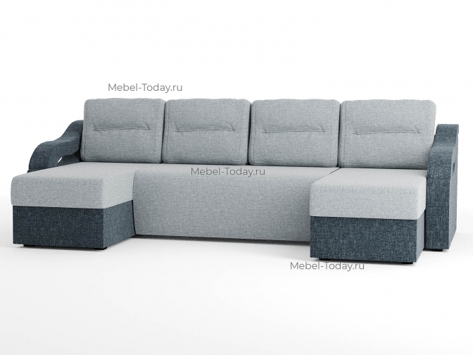 Диван П-образный Сильва 2 с механизмом трансформации еврокнижка с большим спальным местом, дизайн 1