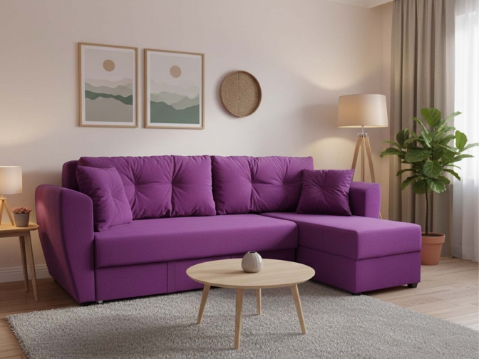 Угловой диван еврокнижка Амстердам велюр фиолетовый