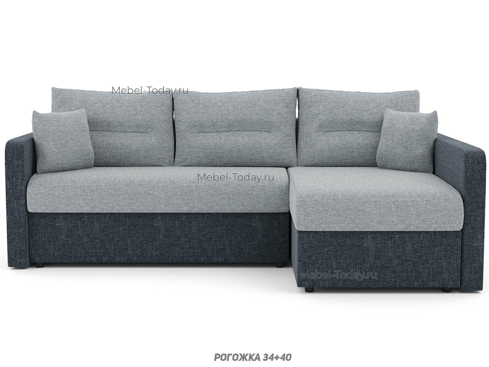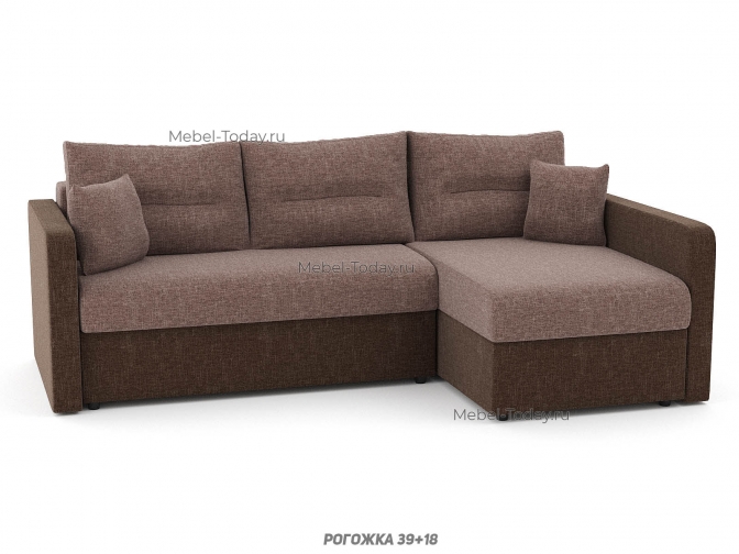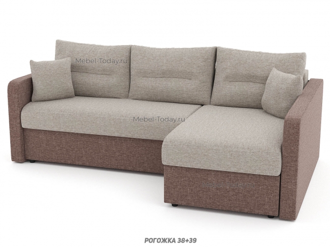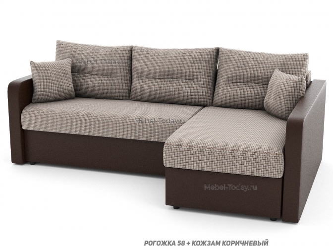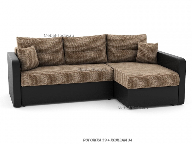 Угловой диван Леон с удлинённым подлокотником-оттоманкой, спальное место 140*200