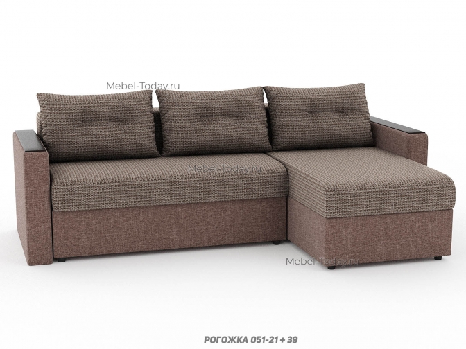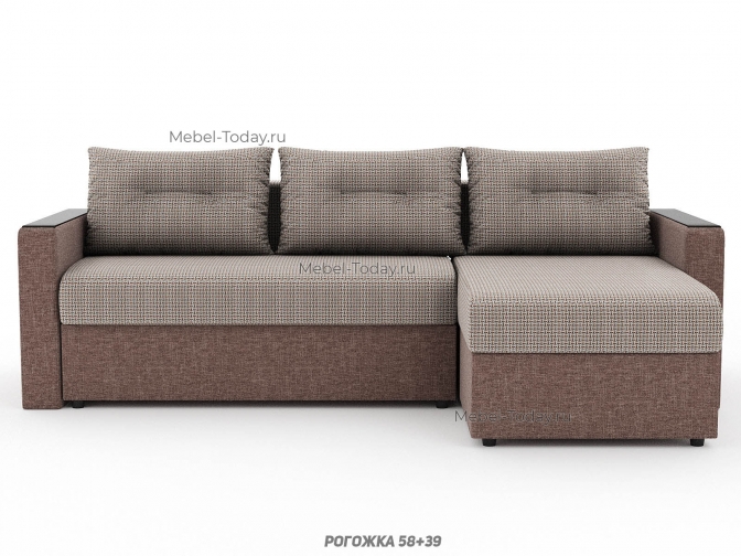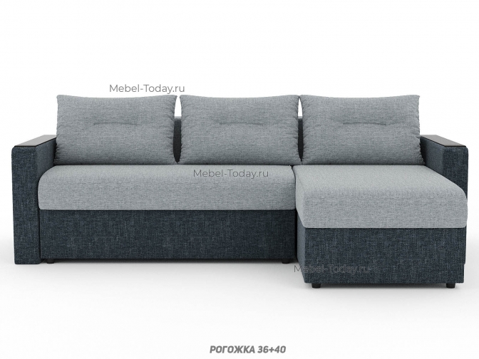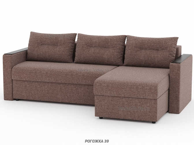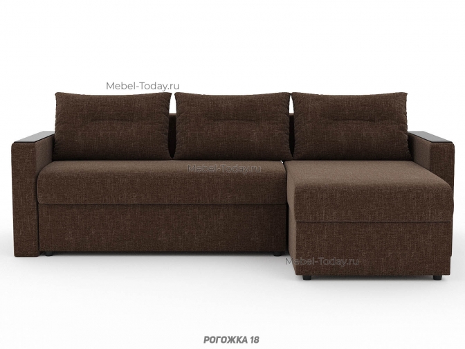 Угловой диван Атлант с деревянными прямыми МДФ подлокотниками, еврокнижка, обивка рогожка