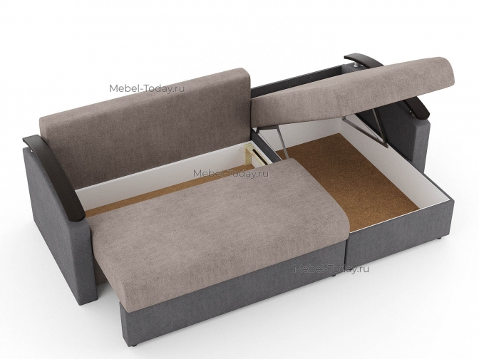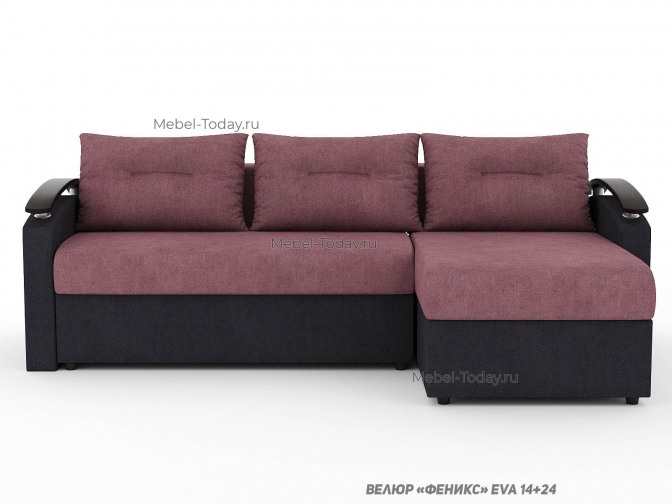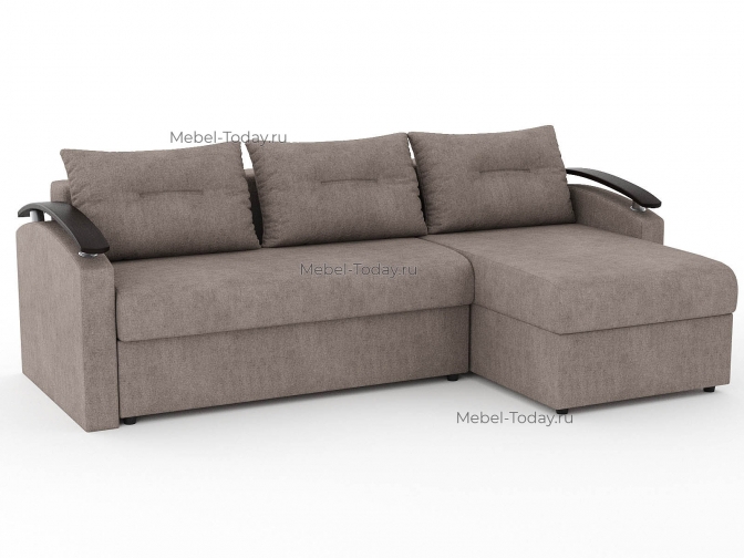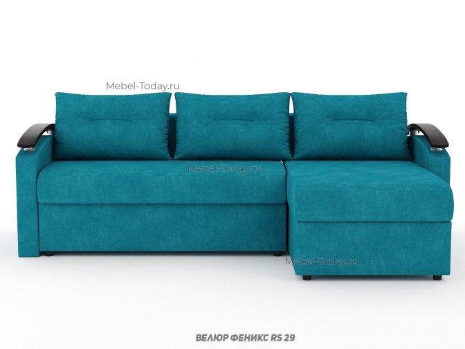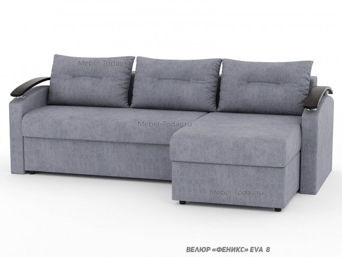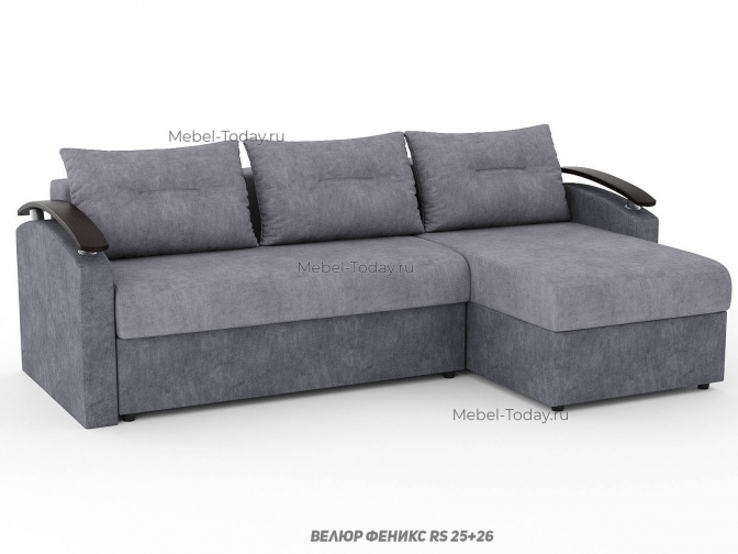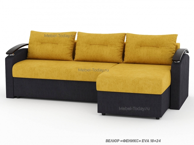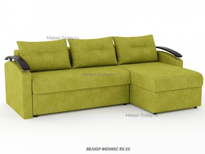 Угловой диван еврокнижка Сицилия с изогнутыми деревянными МДФ подлокотниками, обивка велюр