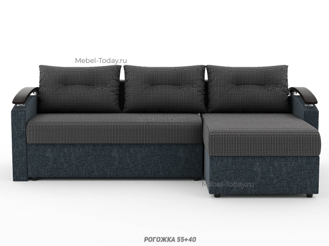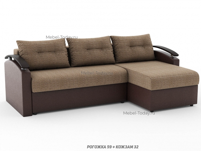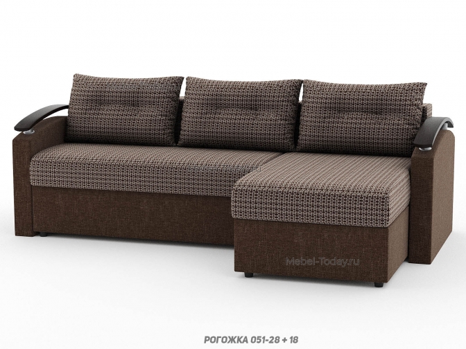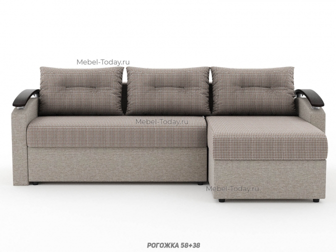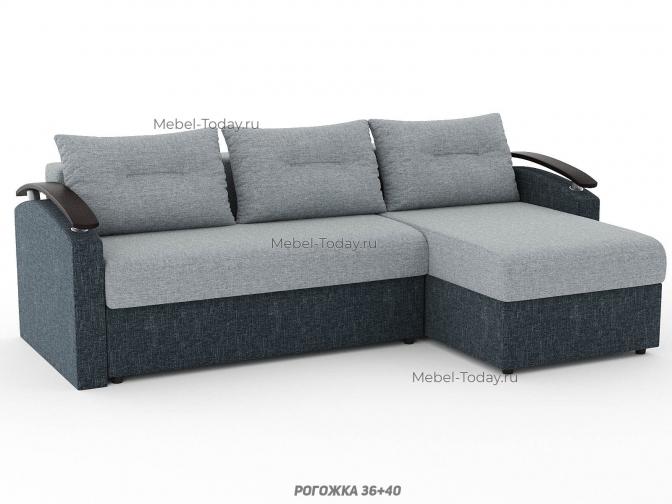Угловой диван еврокнижка Сицилия деревянными МДФ подлокотниками, пружинный или ортопедический, обивка рогожка