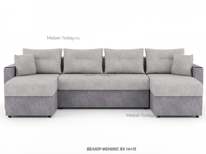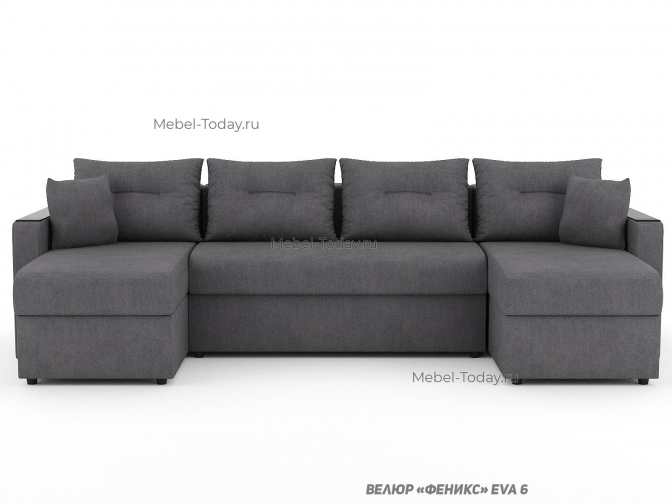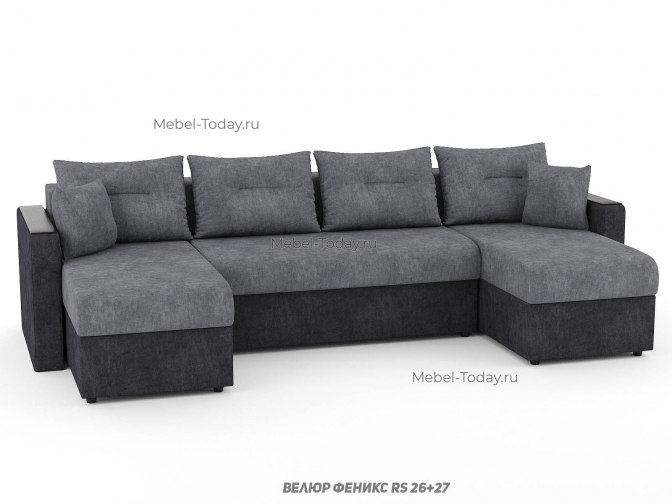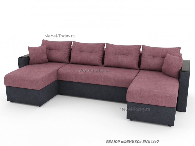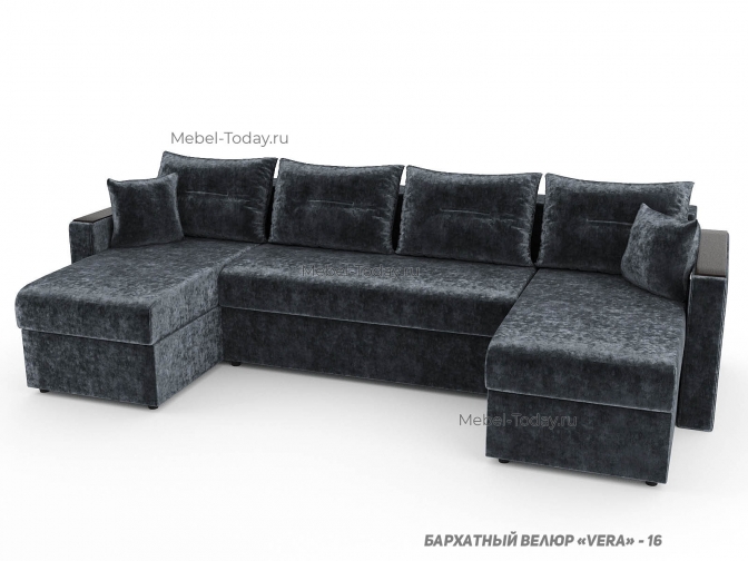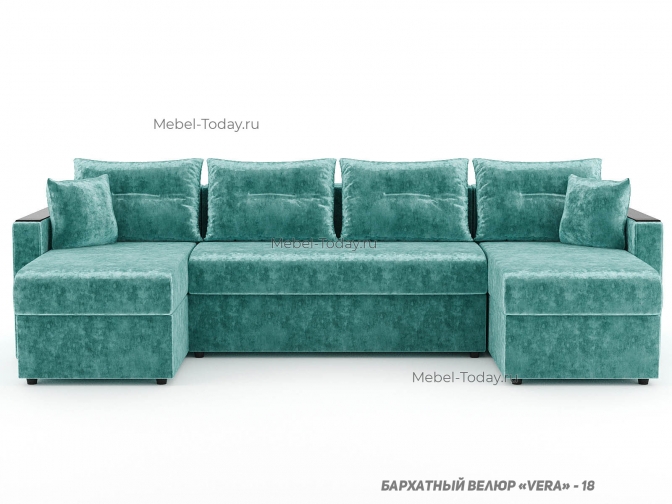 Диван П-образный Атлант еврокнижка с деревянными МДФ подлокотниками, обивка велюр и бархат