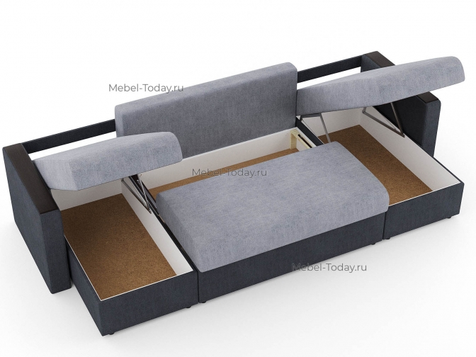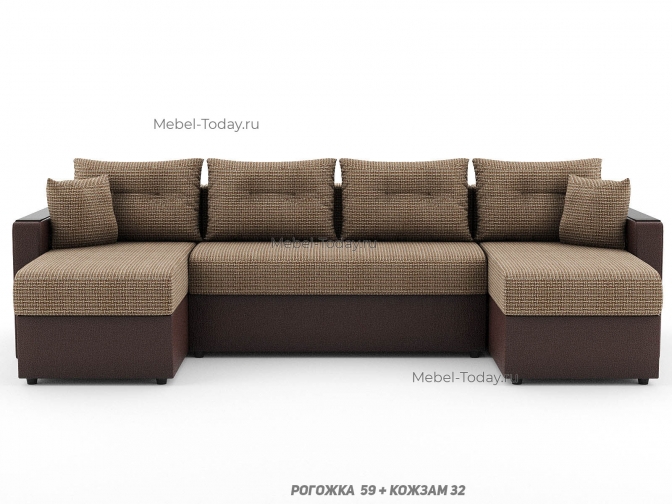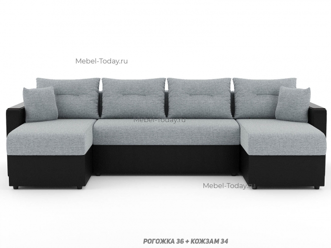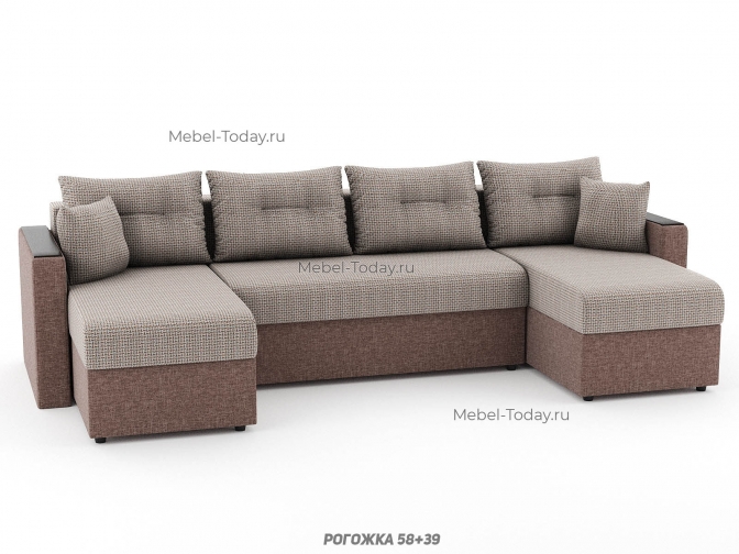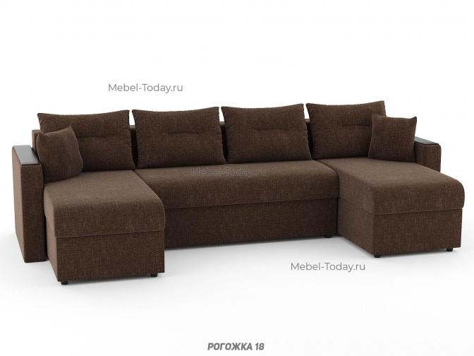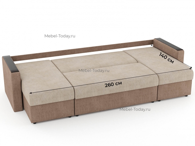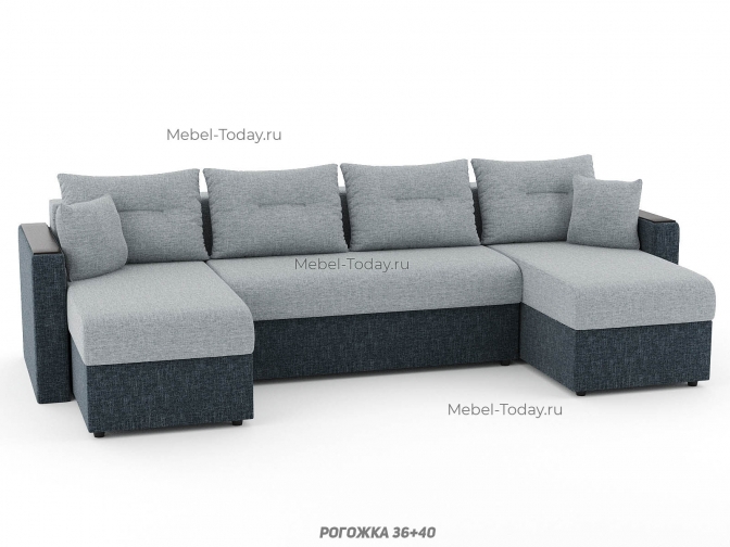 Диван П-образный Атлант еврокнижка с деревянными МДФ подлокотниками, обивка рогожка