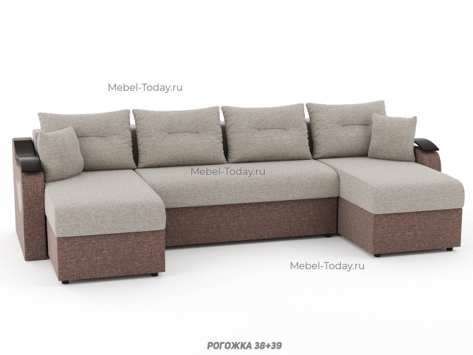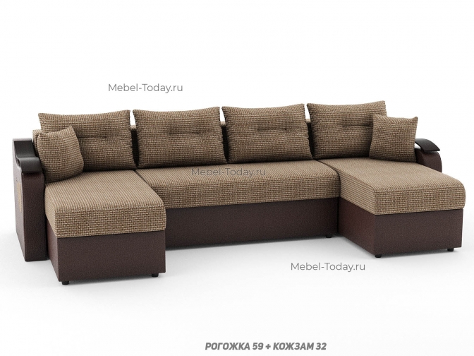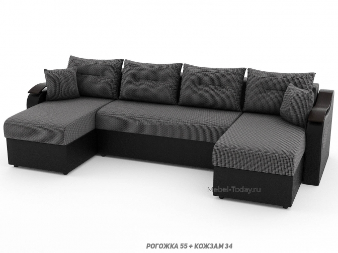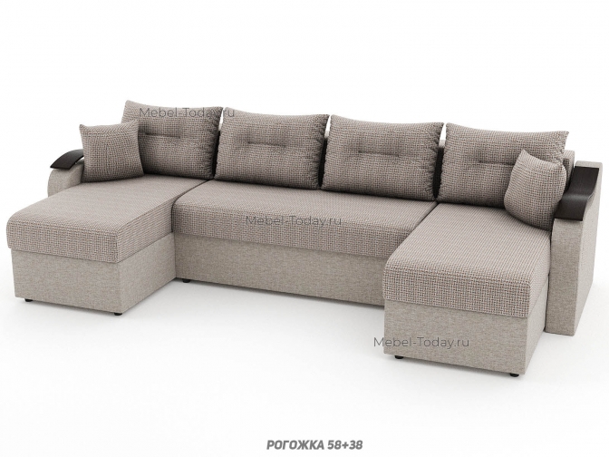 Диван П-образный угловой Меркурий ППУ, пружинный или ортопедический, еврокнижка или пантограф, обивка рогожка