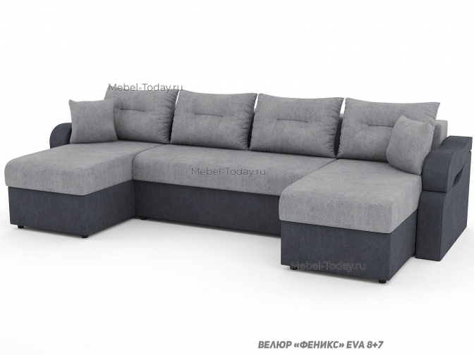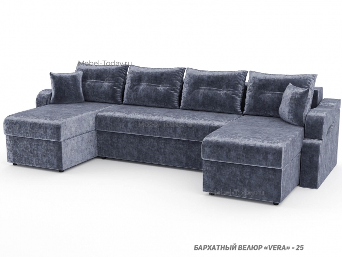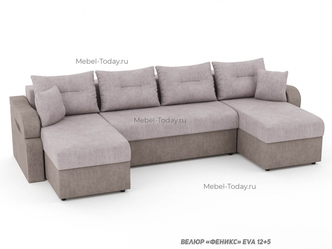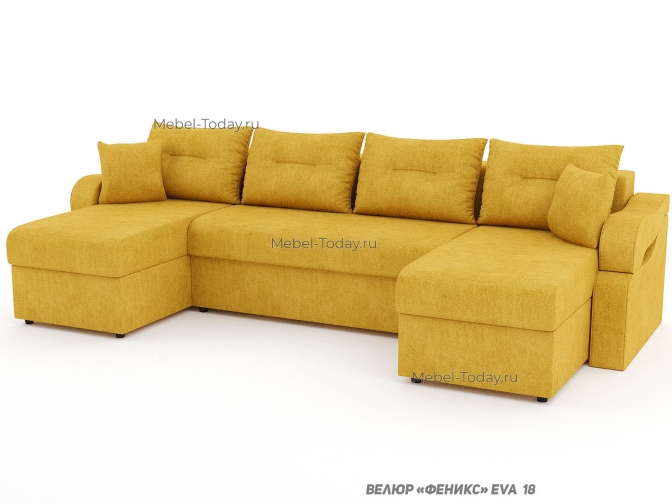 Диван угловой П-образный еврокнижка Сильва, обивка плюш или велюр