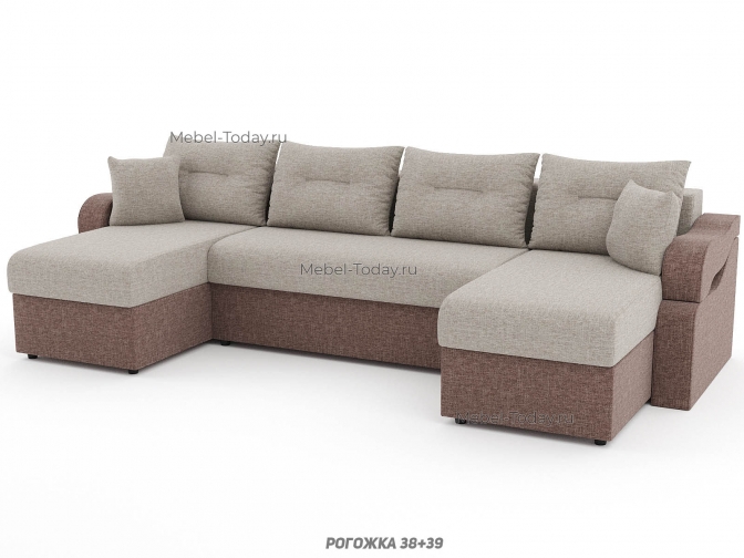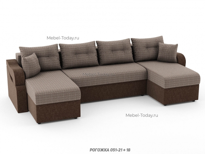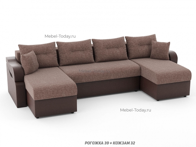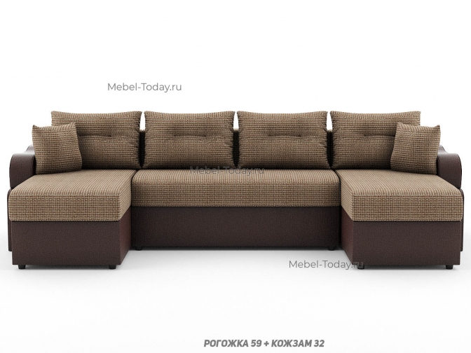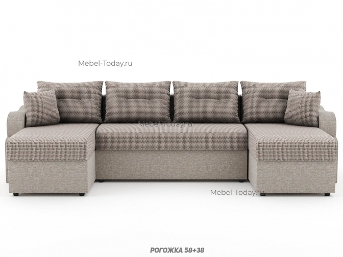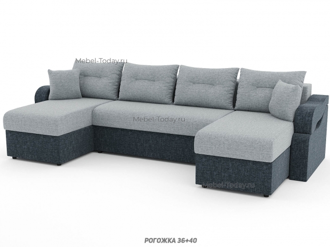 Диван угловой П-образный Сильва, еврокнижка или шагающий, ППУ, пружинный или ортопедический, обивка рогожка