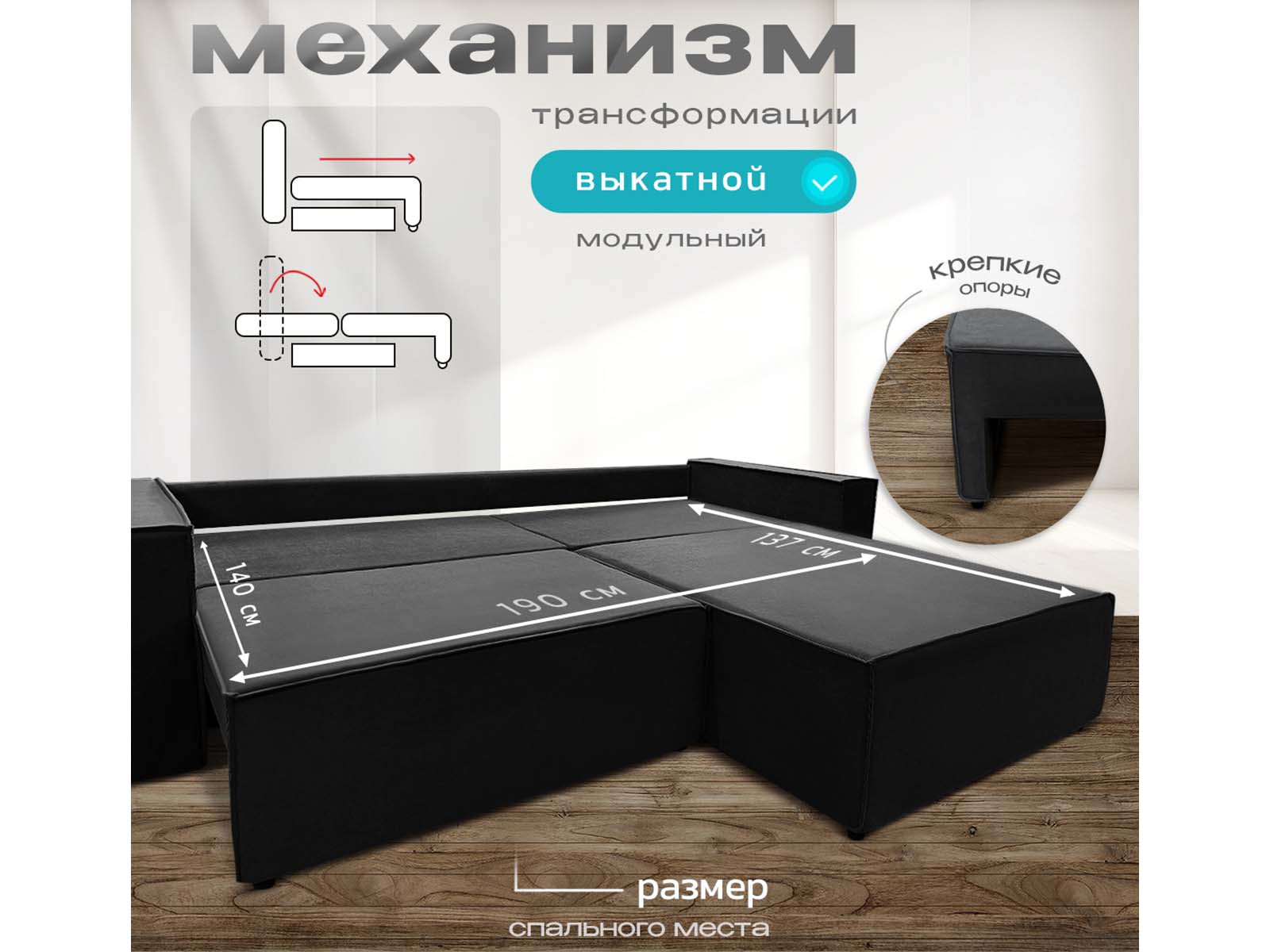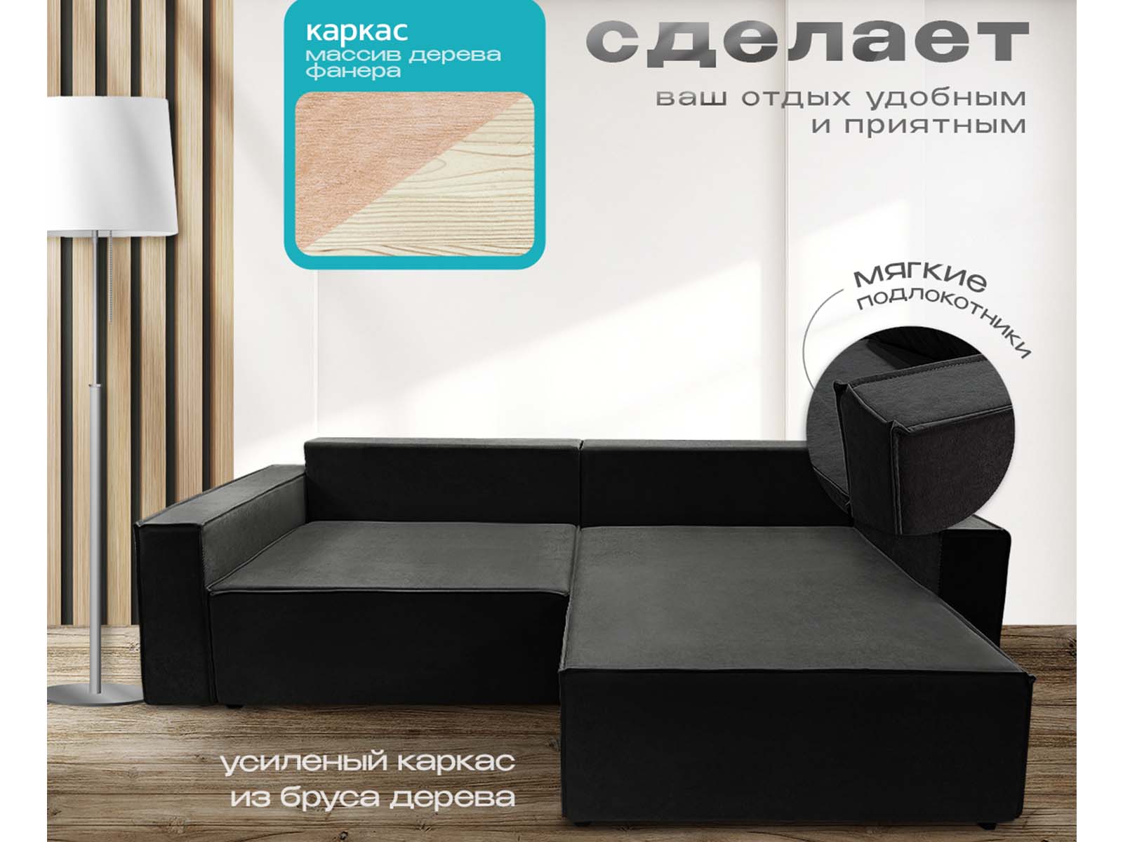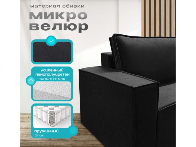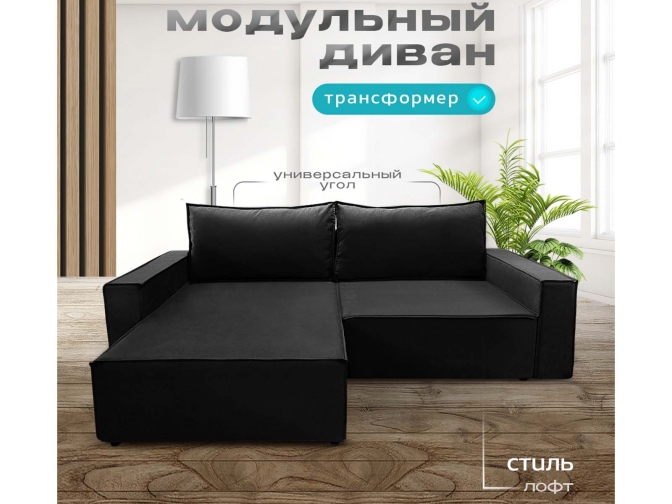 Диван угловой Норд-Лофт, блок независимых пружин, еврокнижка, велюр черный - стильное и практичное решение в стиле лофт с просторным спальным местом 140×190 см для ежедневного использования. Оснащён надёжным механизмом «еврокнижка», ортопедическим независимым пружинным блоком и вместительным ящиком для белья. Прочный каркас из массива и фанеры, износостойкий велюр/плюш и большой выбор обивки обеспечивают долговечность, комфорт и индивидуальный дизайн.
