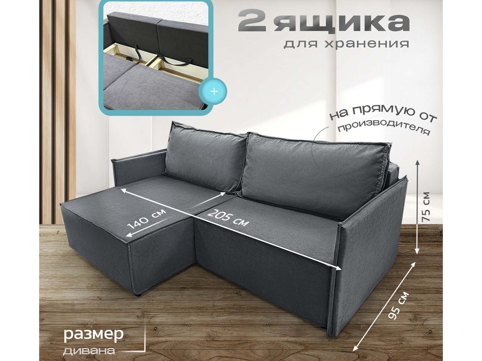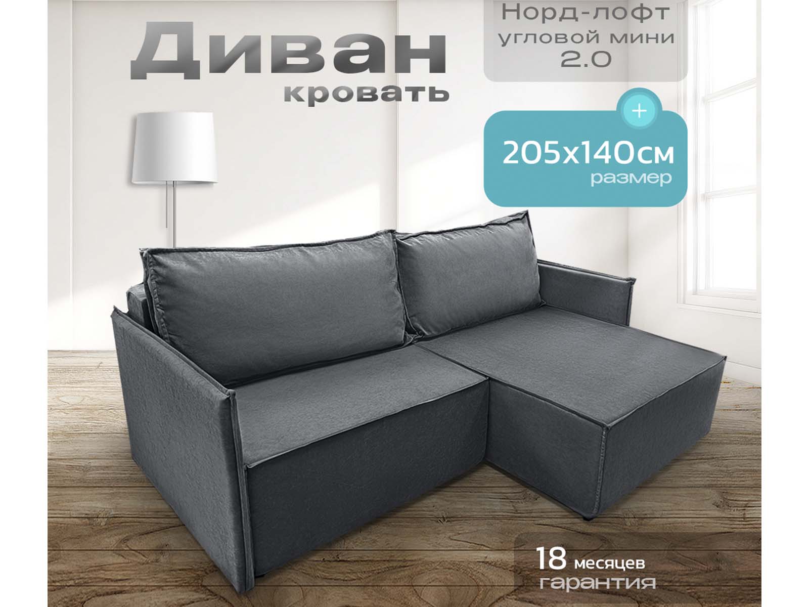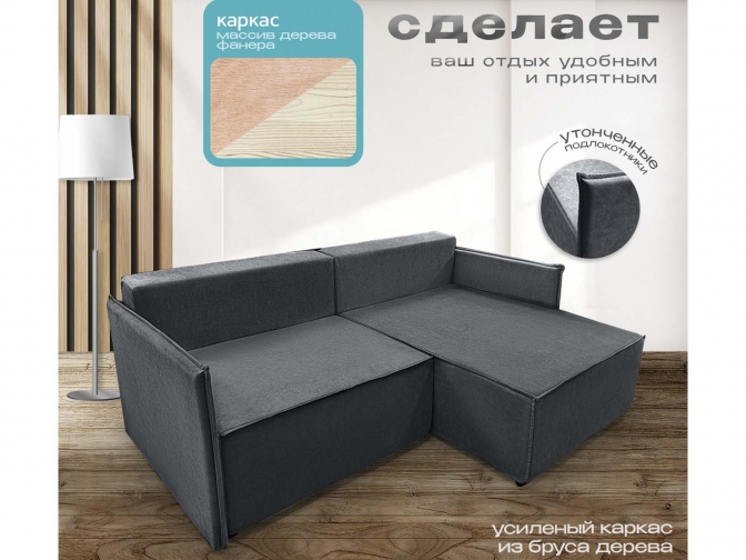 Диван угловой Норд-Лофт 1 с узкими подлокотниками, блок независимых пружин, еврокнижка, велюр темно-серый - стильное решение в стиле лофт для ежедневного использования. Механизм «еврокнижка», спальное место увеличенной ширины, независимый пружинный блок и вместительный ящик для белья. Прочный каркас из массива и фанеры, износостойкий велюр, возможность выбора обивки.