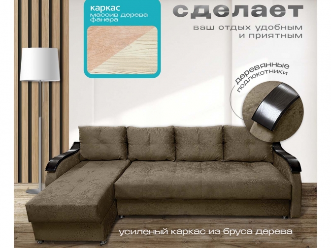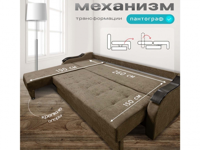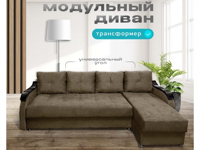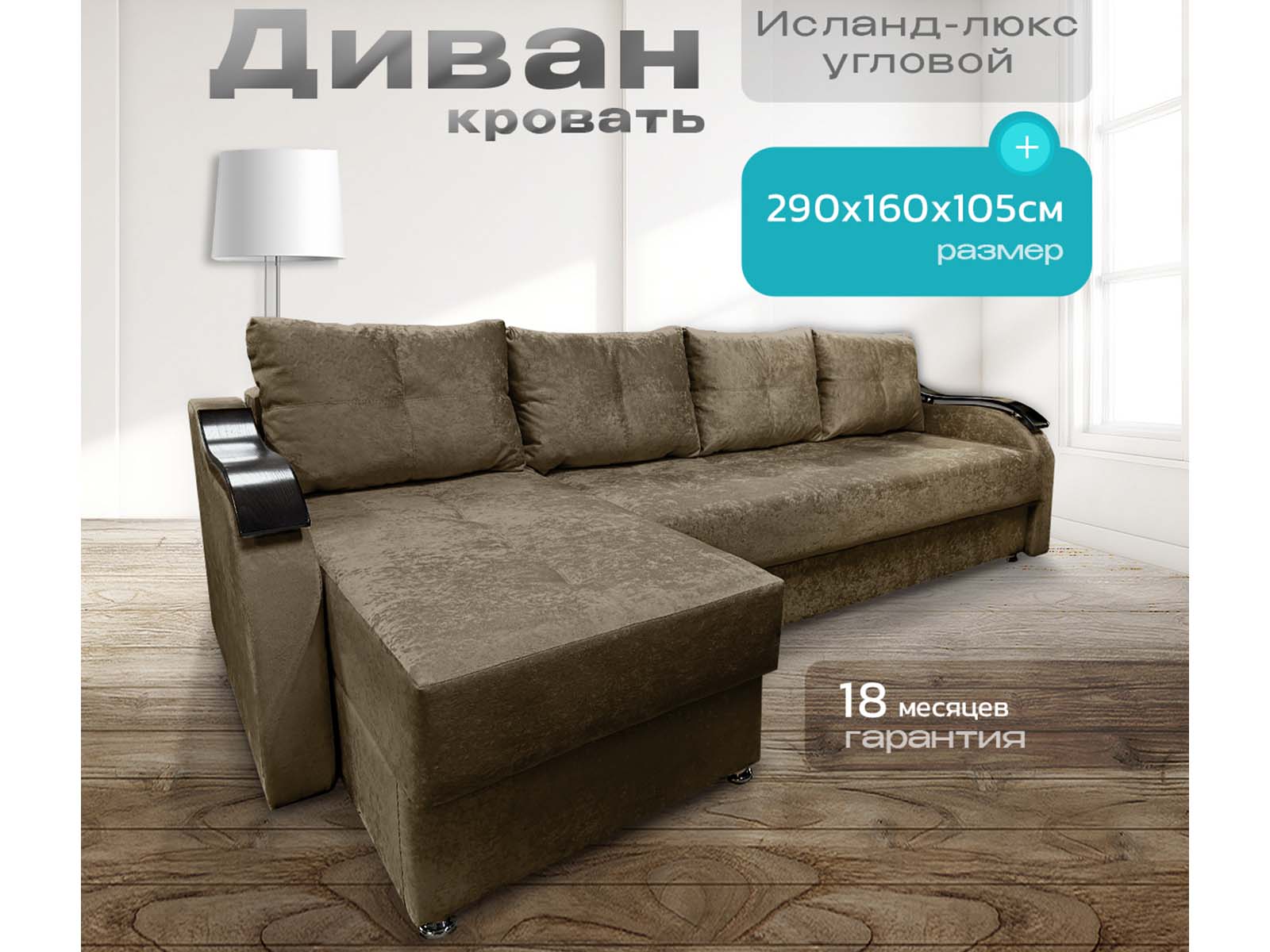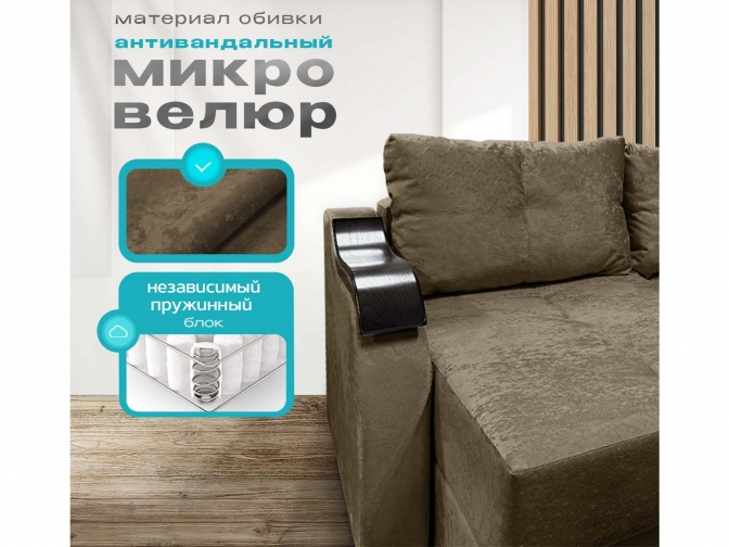Диван угловой Исланд Люкс, блок независимых пружин, еврокнижка, бархатный велюр коричневый - где стиль встречается с настоящим комфортом. Секрет удобства — в механизме «пантограф»: раскладывать диван легко, а спальное место получается по-настоящему просторным. Двум взрослым будет комфортно отдыхать на нём вдвоём. Продуманная геометрия и мягкие линии делают его центром притяжения в гостиной.