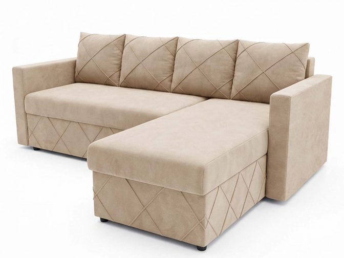 Угловой диван еврокнижка Стелла велюр бежевый