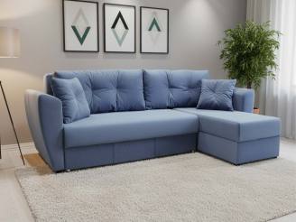 Угловой диван еврокнижка Амстердам велюр синий