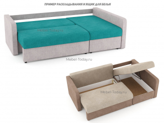 Угловой диван Леон с удлинённым подлокотником-оттоманкой, спальное место 140*200