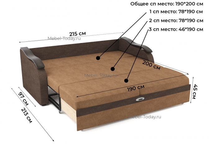 Модель можно раскладывать тремя разными способами, получается три три варианта спального места: