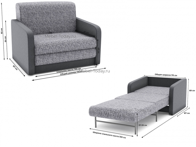 Диван раскладной Ольга 100 Эконом, односпальный, с мягкими подлокотинками