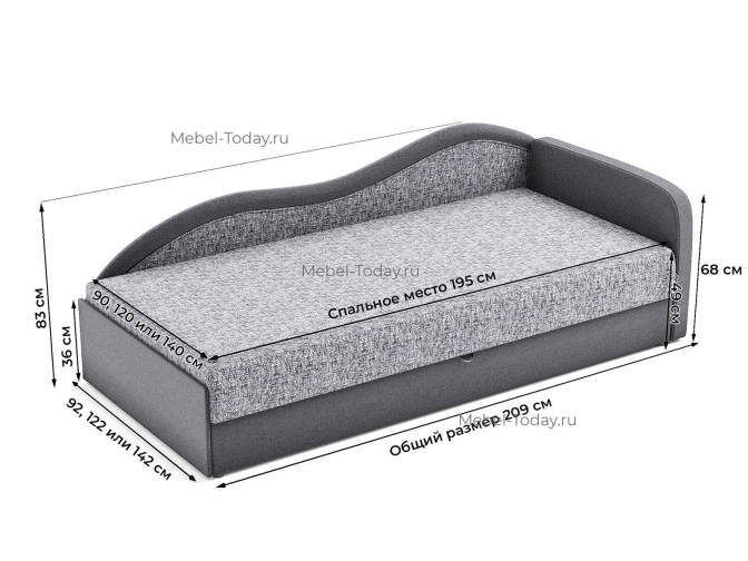 Возможно заказать эту модель с размерами спального места: 90, 120 или 140.