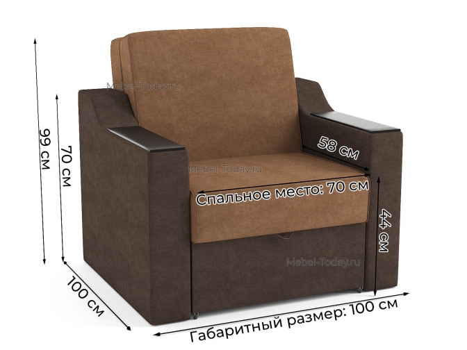 Раскладное кресло-кровать аккордеон Людмила 70х195 см с прямыми накладками МДФ