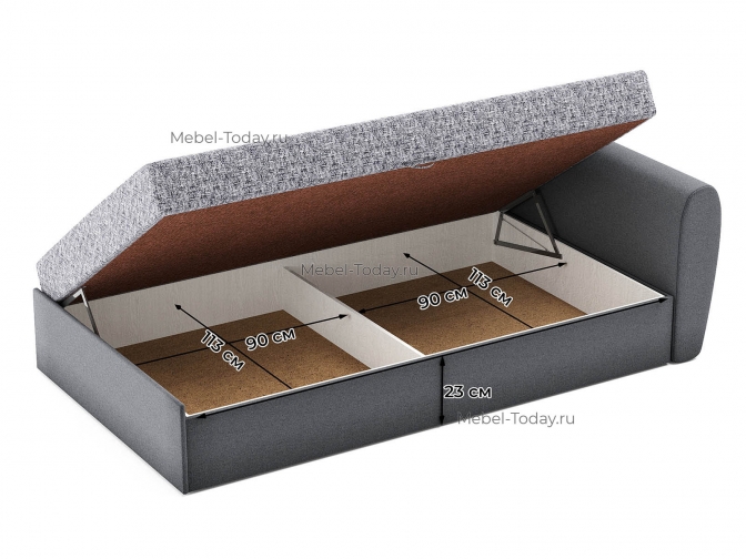 Настил мягких элементов: ППУ. Можно заменить на пружинный блок BONNEL или ортопедический матрас (блок независимых пружин) с доплатой.