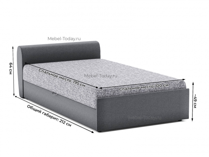 Кушетка-тахта Юлия Плюс 120 см с подъемным механизмом и ящиком Эконом