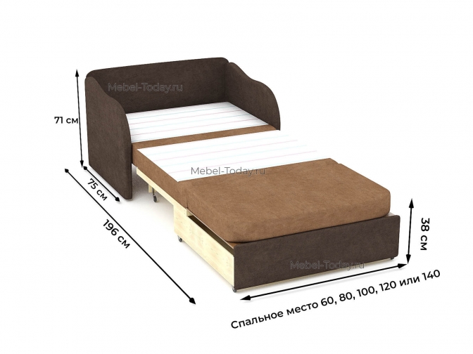 Диван Марина (Юлечка) 100 см выкатной с латами с мягкими подлокотниками Эконом