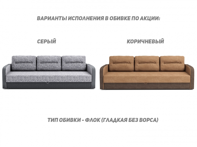 Модель в обивке флок по фото со скидкой. Цена по фото серый или коричневый. Вы также можете выбрать диван в другой обивке, но подороже (более 200 вариантов тканей).