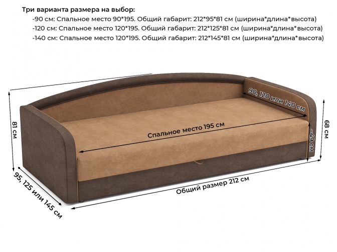 Высота спального места 50 см. Высота подлокотников от спального места - 12 см, высота зедней спинки - 15 см.