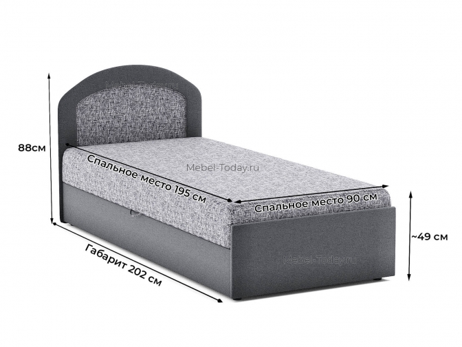 Односпальная тахта Юлия 90 см с одной мягкой спинкой в голове Эконом