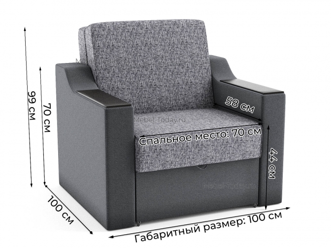 Кресло-кровать аккордеон Людмила 70 ДН с МДФ прямыми подлокотниками прямыми