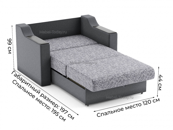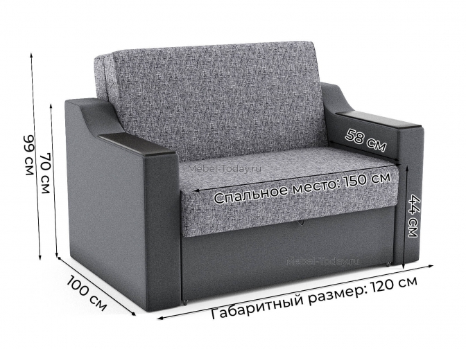 Диван-аккордеон Людмила 120 ДН с МДФ прямыми подлокотниками прямыми