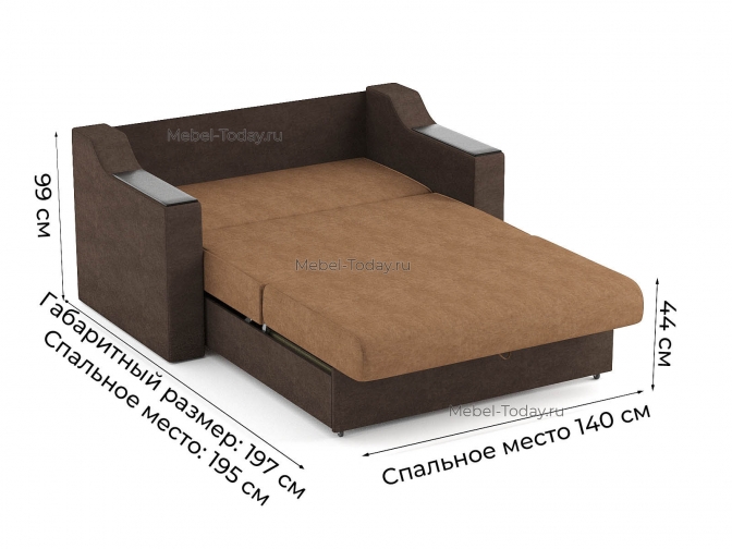 Диван-аккордеон двуспальный Людмила с МДФ подлокотниками прямыми, спальное место 140*195