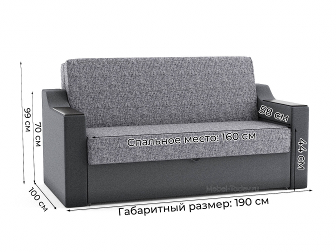 Диван-аккордеон Людмила 160 ДН с деревянными прямыми подлокотинками, спальное место 160*195 см