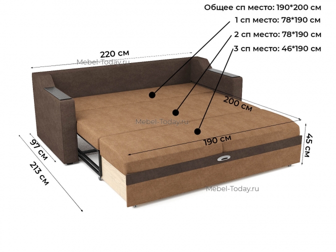 Модель можно раскладывать тремя разными способами, получается три три варианта спального места: