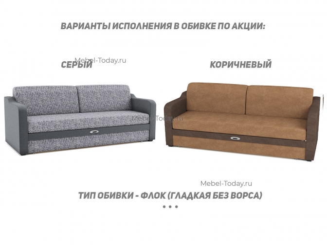 Модель в обивке флок по фото со скидкой. Цена по фото. В наличии две комбинации цвета: серая и коричневая. Вы также можете выбрать диван в другой обивке, но подороже (более 200 вариантов тканей).