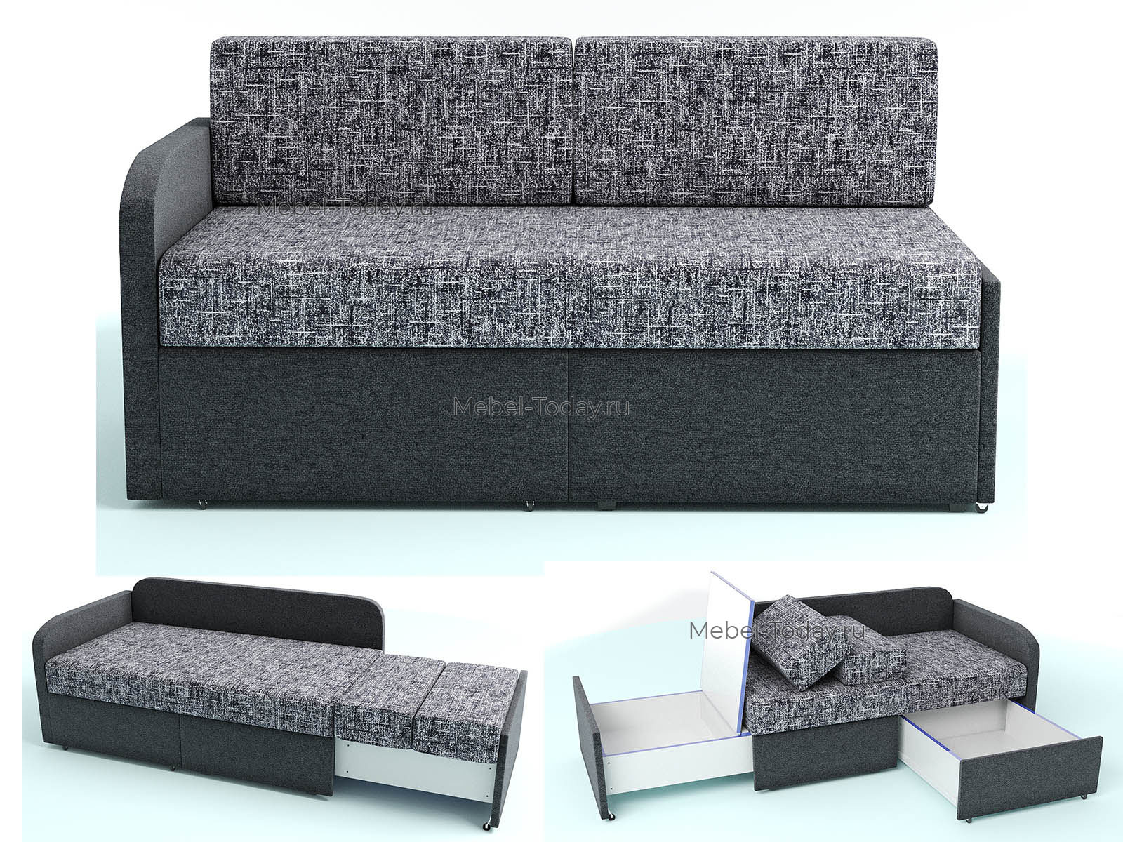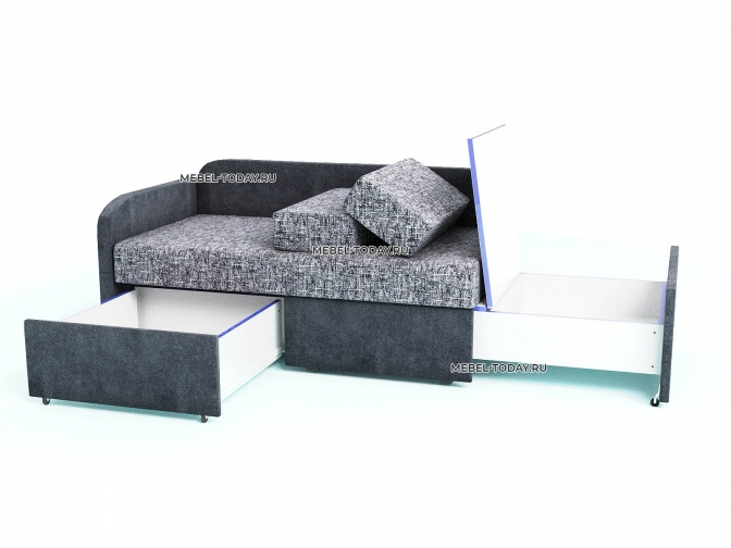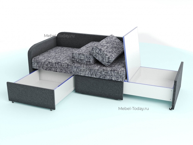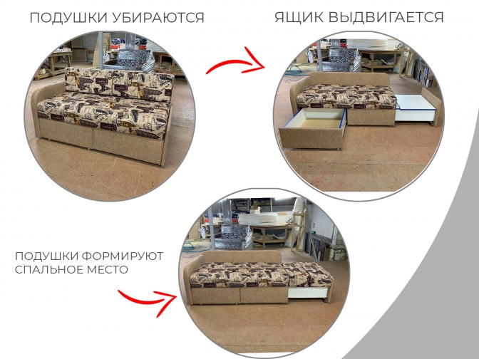 Раскладывание: выкатывается ящик, далее подушки кладутся на образовавшееся место.