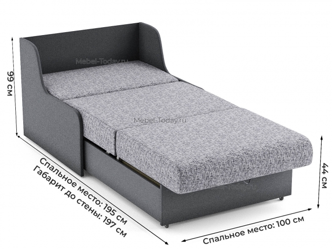 Мини-диван (крелсо-кровать) аккордеон Людмила 100 см без подлокотников